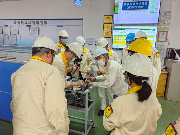 ? ? 武田總經(jīng)理、張希勇副總經(jīng)理及各部門(mén)長(zhǎng)陪同高橋會(huì)長(zhǎng)視察了GAC的模具、鑄造、加工等工序,重點(diǎn)介紹了CATL工程進(jìn)度及自動(dòng)化推進(jìn)過(guò)程。高橋社長(zhǎng)指出電動(dòng)車(chē)部品更新?lián)Q代快,我們應(yīng)提高生產(chǎn)準(zhǔn)備活動(dòng)質(zhì)量,加快改善步伐。